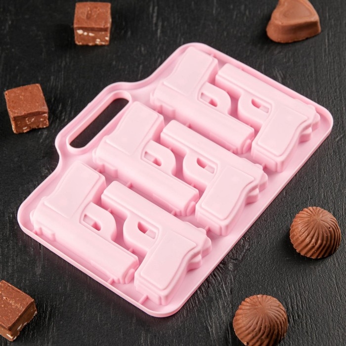Форма для шоколада Доляна «Пистолет», силикон, 18,7×13,4 см, 6 ячеек (7,5×5,1 см), цвет розовый