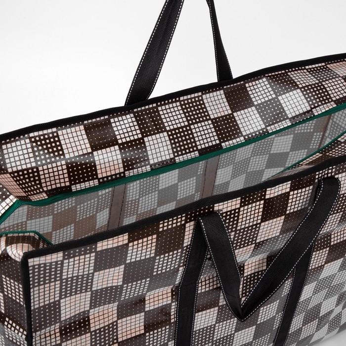 Сумка хозяйственная на молнии, 54 л, цвет коричневый/бежевый
