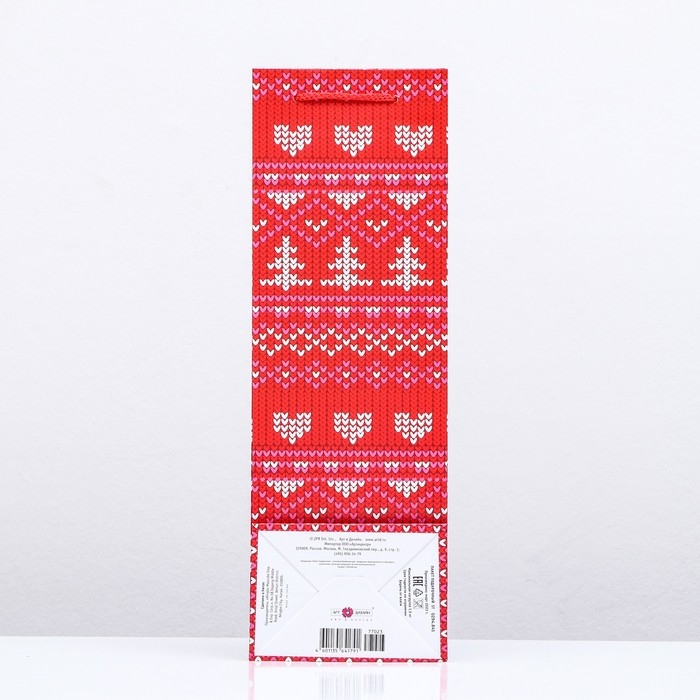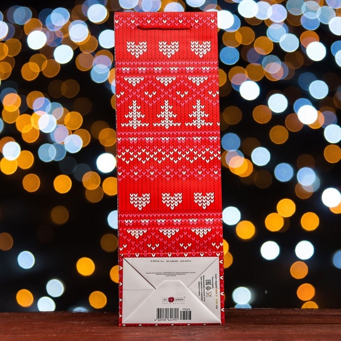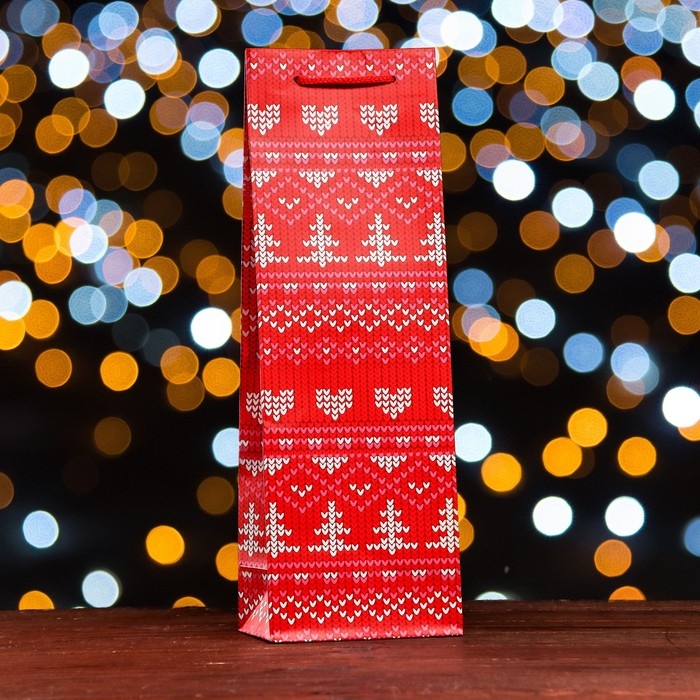 Пакет подарочный новогодний под бутылку, упаковка подарочный "Новогодние узоры ", 12 х 36 х 8,5см.