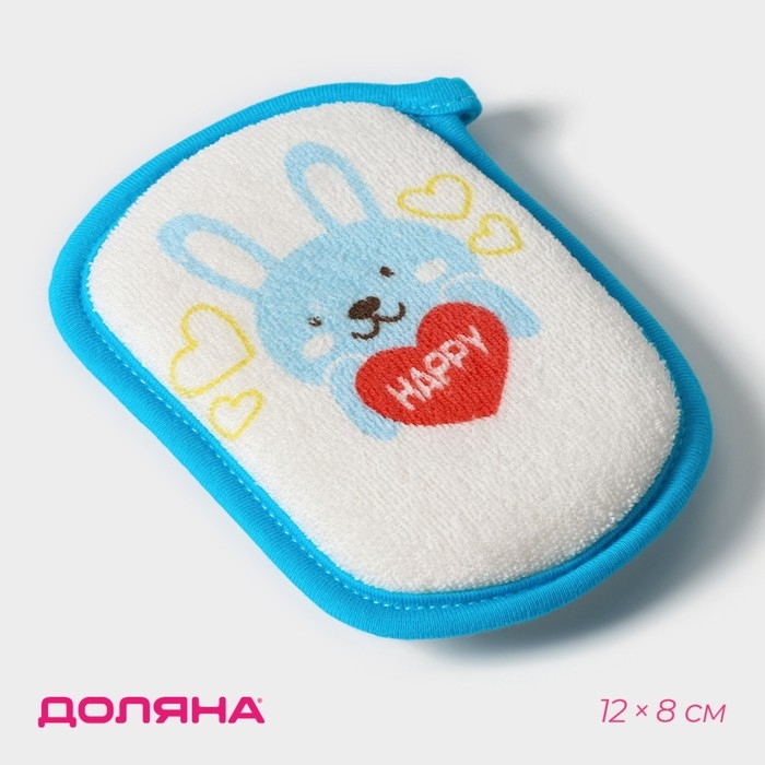 Мочалка детская для купания Доляна «Заяц», 12×8 см, цвет синий