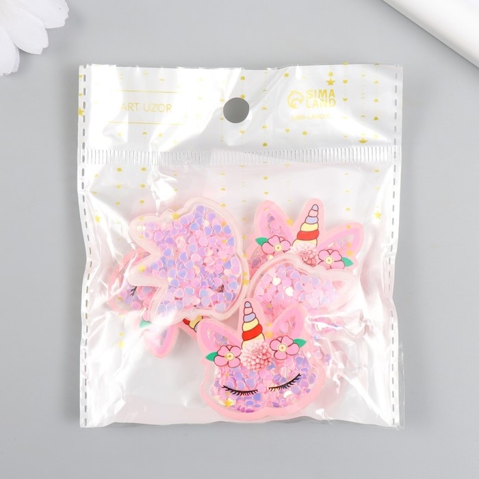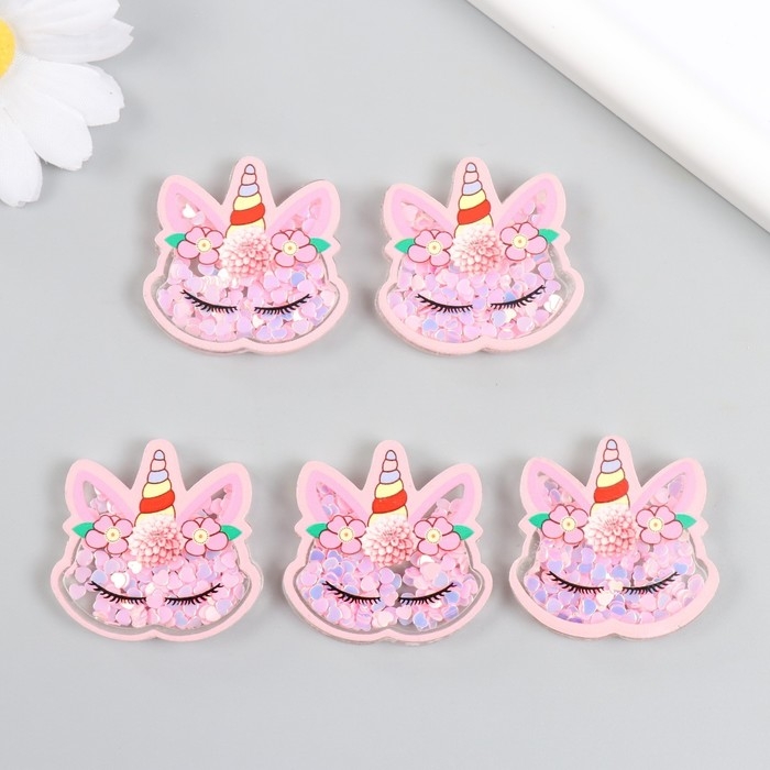 Шейкер для творчества акрил "Спящий единорожек с цветами" с глиттером набор 5 шт 0,5х3,7х3,6 см 10