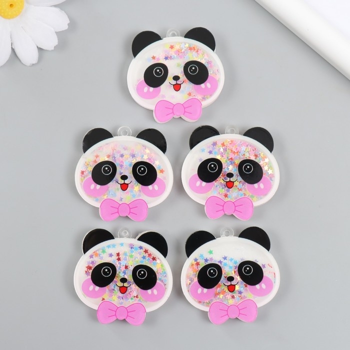 Шейкер для творчества акрил "Панда с бантом" с глиттером набор 5 шт 0,6х4,4х4,3 см