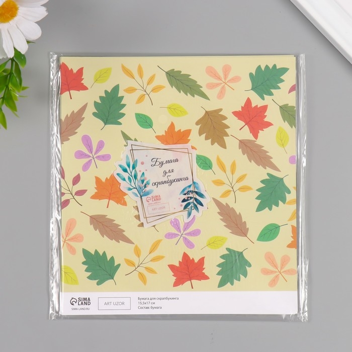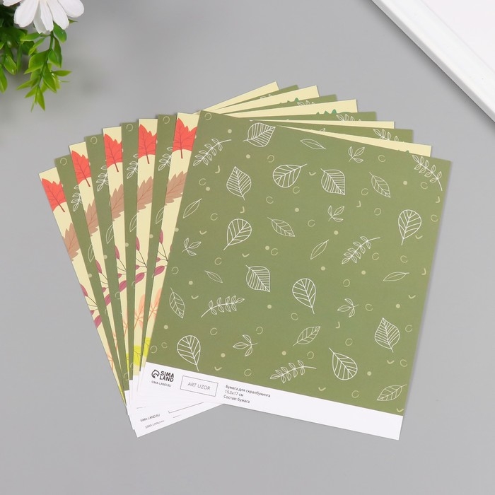 Бумага для скрапбукинга двусторонняя "Листья" плотность 180 гр набор 10 шт 15,5х17 см