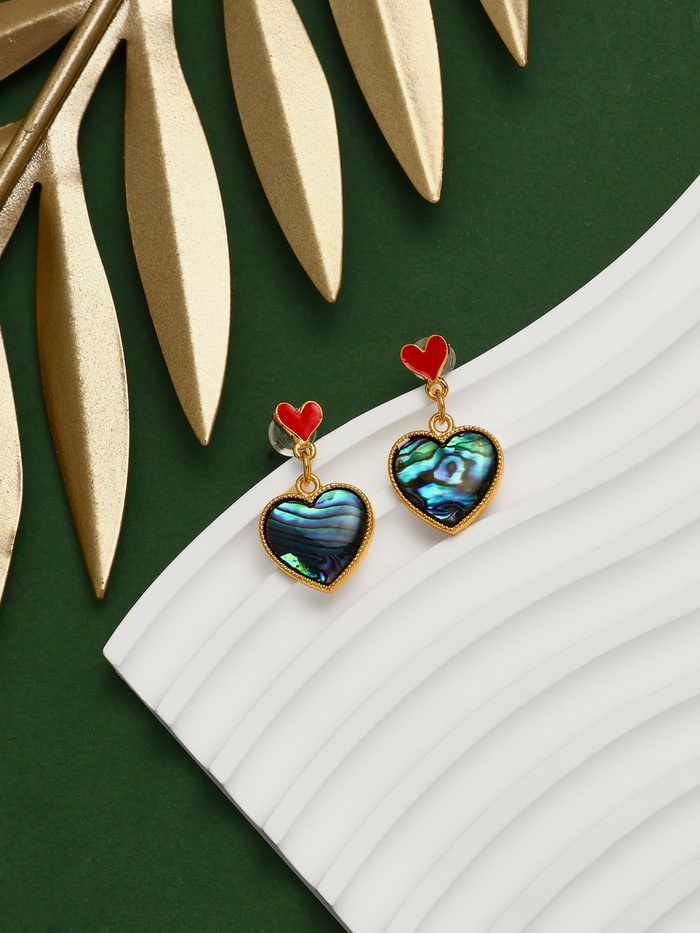 Серьги «Галиотис» сердце, цвет зелёный в золоте