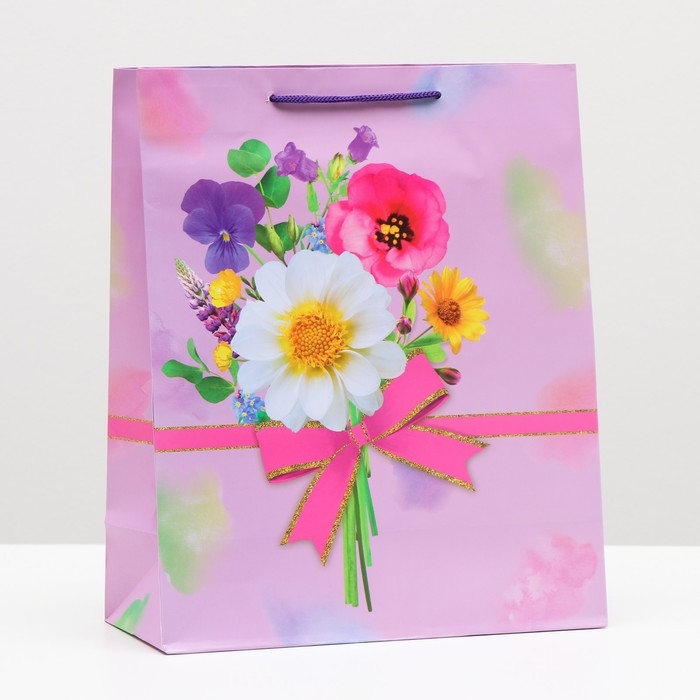 Пакет подарочный "Полевой букет" 26 х 32 х 12 см