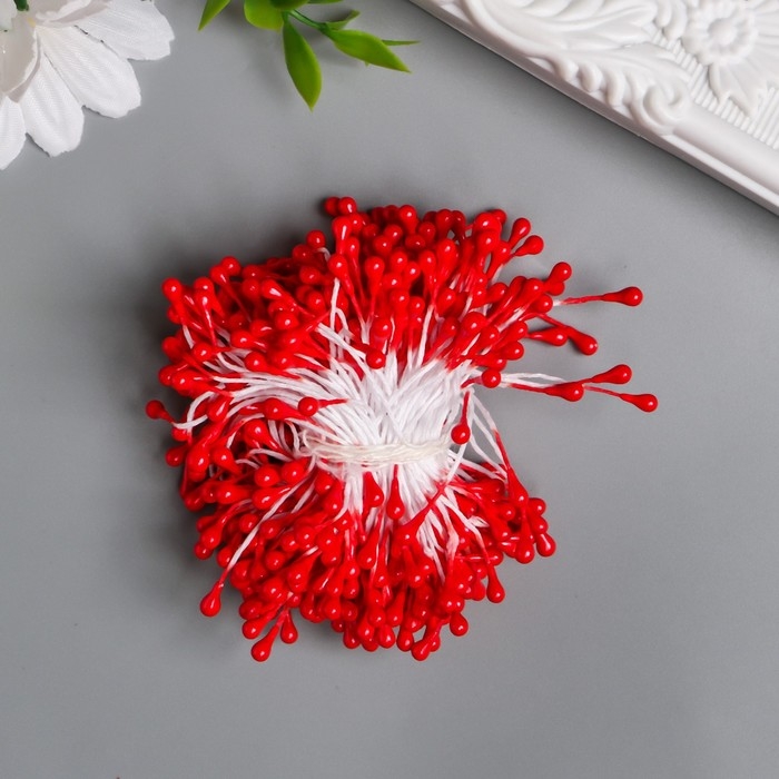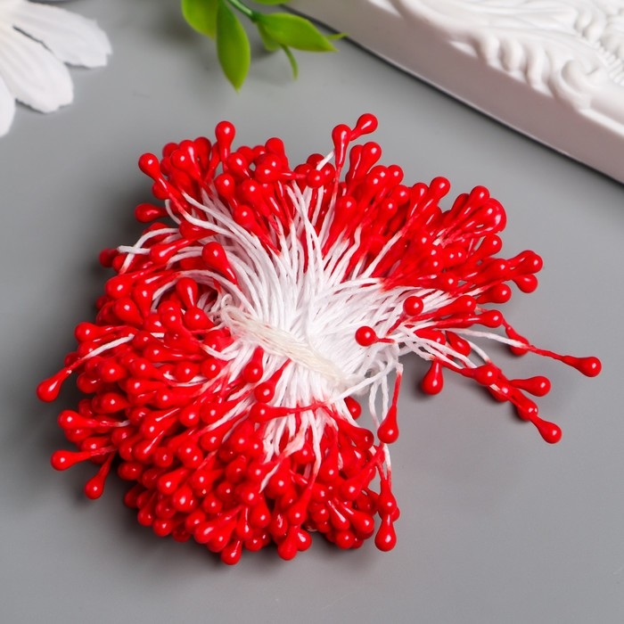 Тычинки для цветов "Капельки глянец малиновые" набор 300 шт длина 6 см