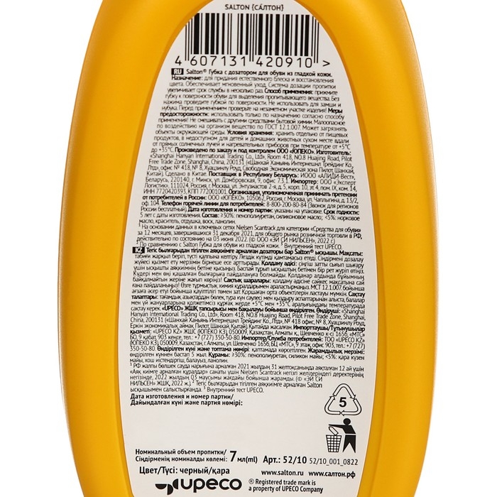 Губка для обуви Волна SALTON для гладкой кожи с дозатором Черная