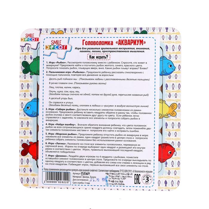 Головоломка «Аквариум» — это уникальная игра, созданная для развития зрительного восприятия, внимания, памяти, логики и пространственного мышления вашего ребёнка.