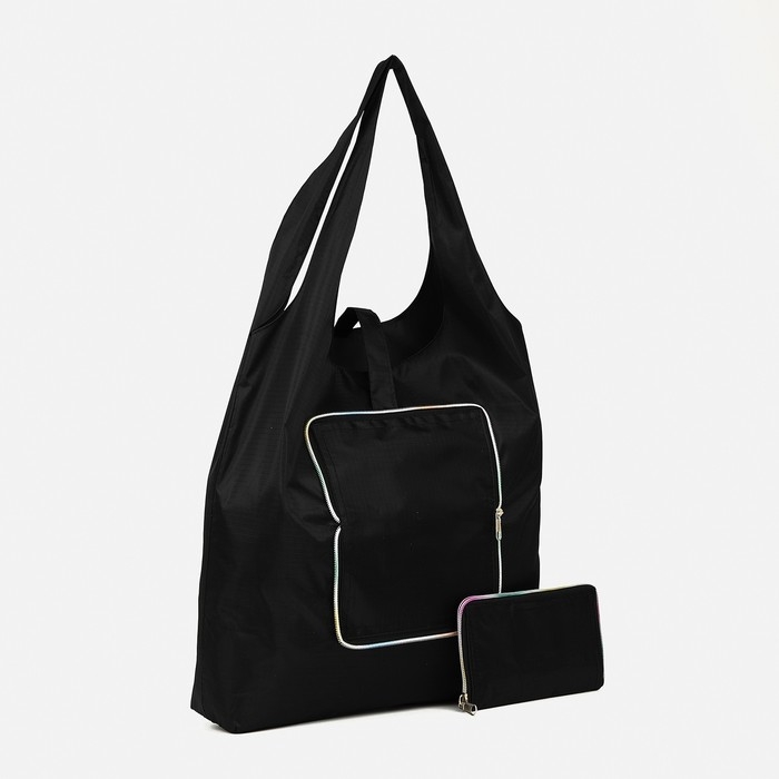 Сумка хозяйственная на кнопке, складная, цвет чёрный
