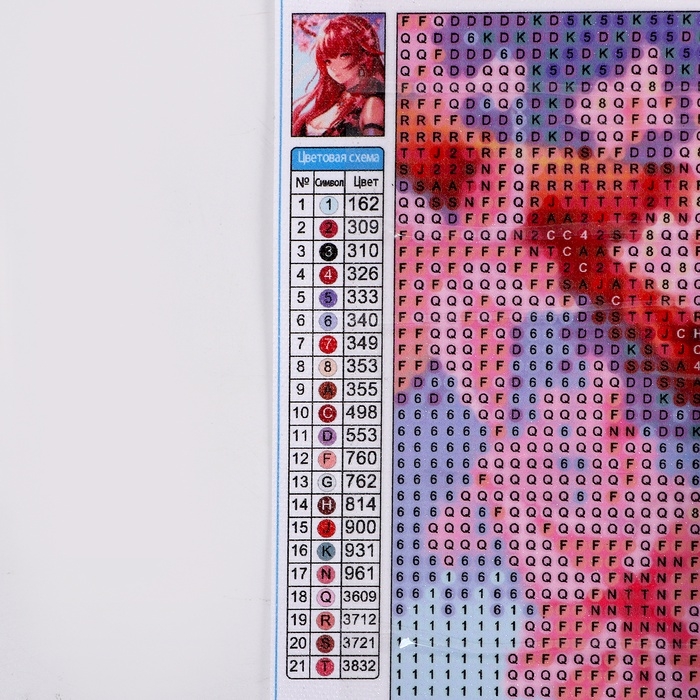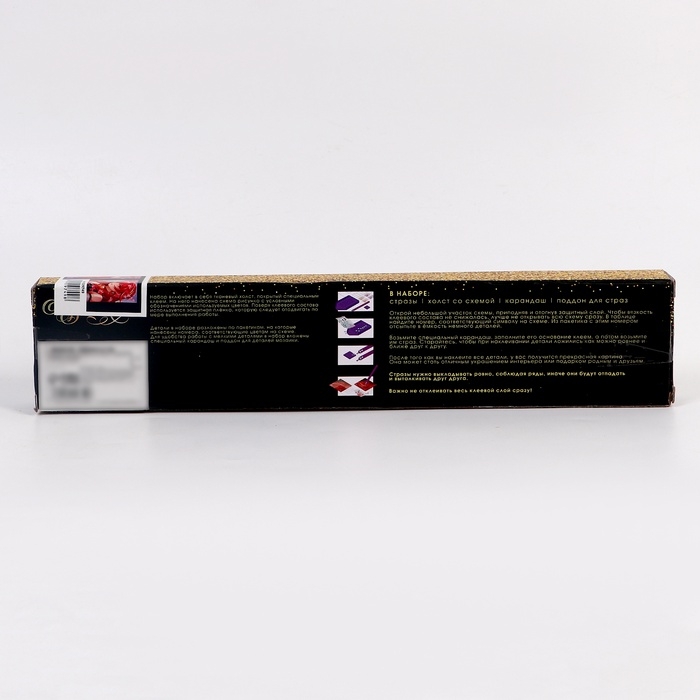 Вам предстоит разложить кристаллики карандашом по пронумерованной схеме. Холст с клеевым покрытием будет надёжно удерживать стразы.