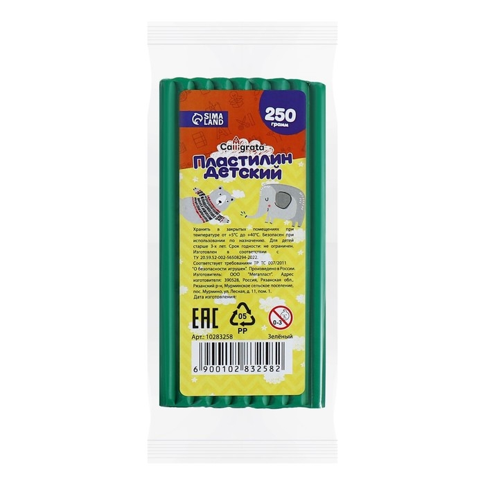 Пластилин 250г Calligrata Классический, зелёный