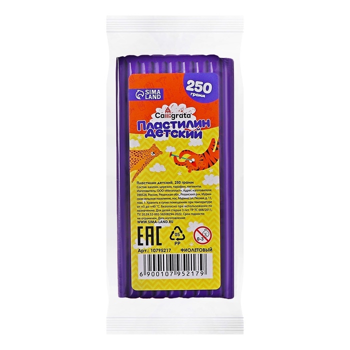 Пластилин 250г Классический Calligrata ФИОЛЕТОВЫЙ