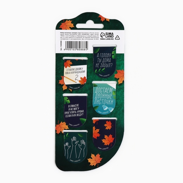 Закладки магнитные для книг, 6 шт «Читать не вредно!»