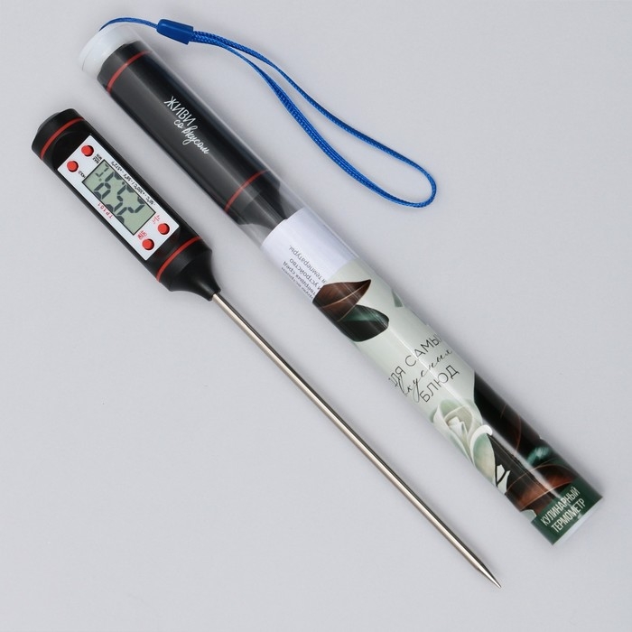 Термометр (термощуп) электронный на батарейках «Живи со вкусом», чёрный.