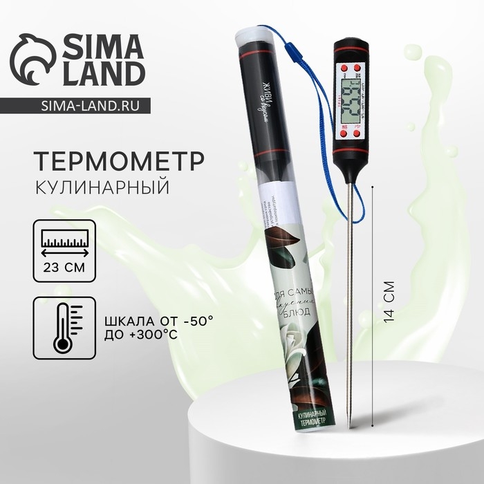 Термометр, градусник кулинарный, пищ "Для кухни", от 20 до 200 °C, 20 см х 1.5 см