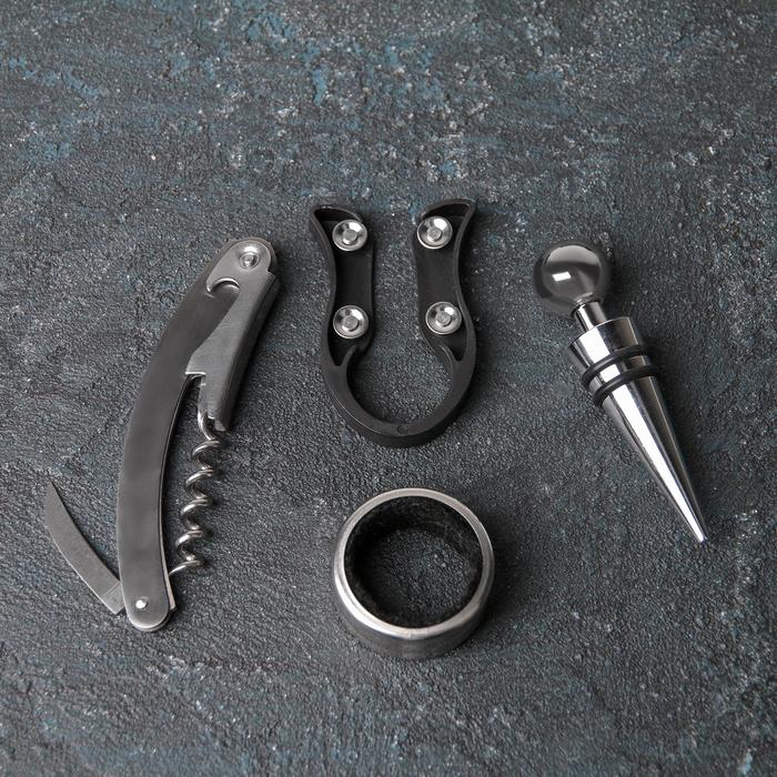 Набор для вина Доляна «Кьянти», 4 прибора: кольцо, штопор, нож для фольги, пробка