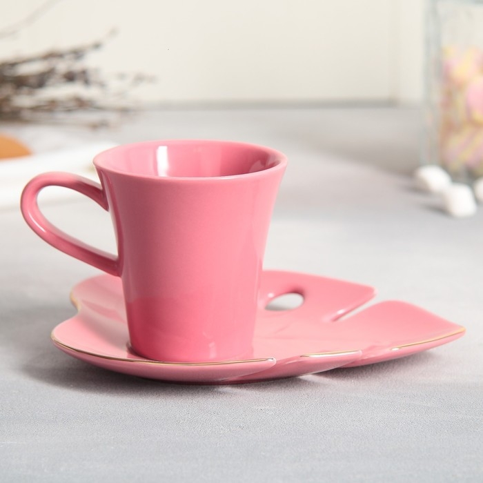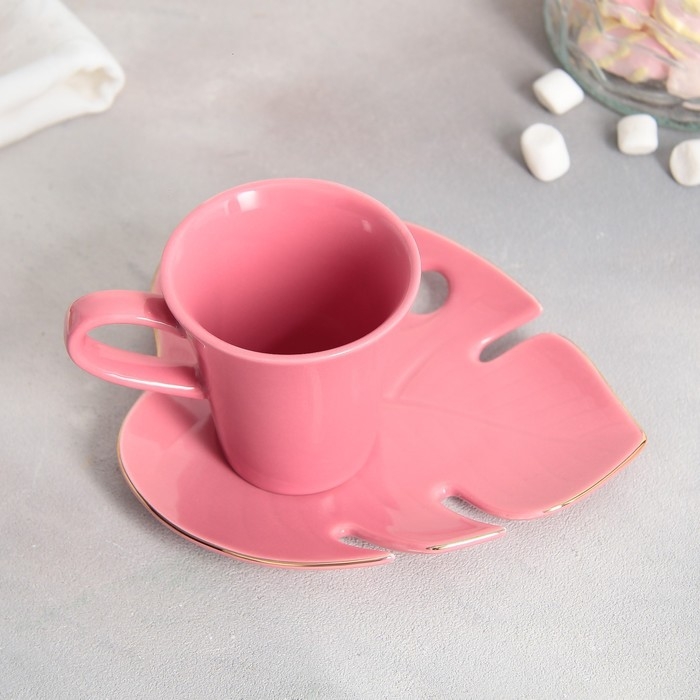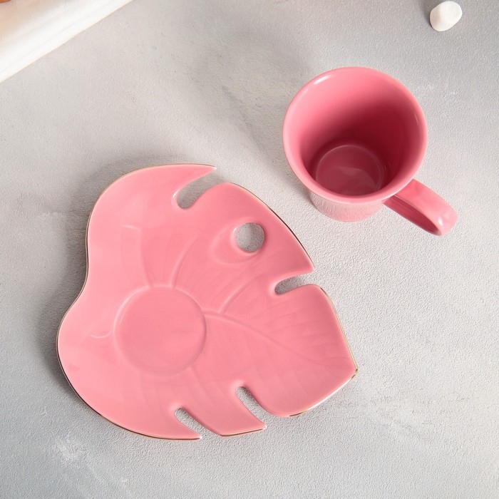 Чайная пара «Розовая монстера», кружка 100 мл, блюдце 15х14 см