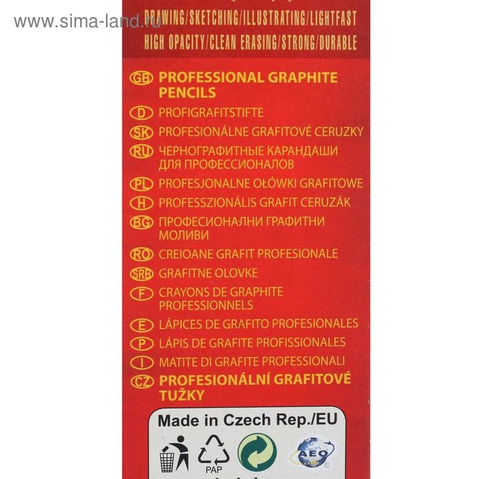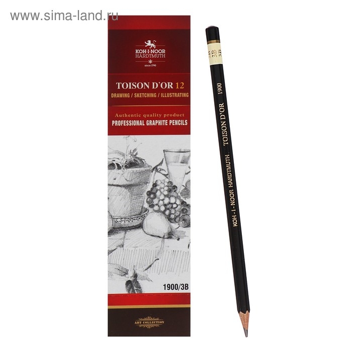 Профессиональный графитовый карандаш Koh-I-Noor 1900 рекомендуется для выполнения художественных и чертёжных работ.
