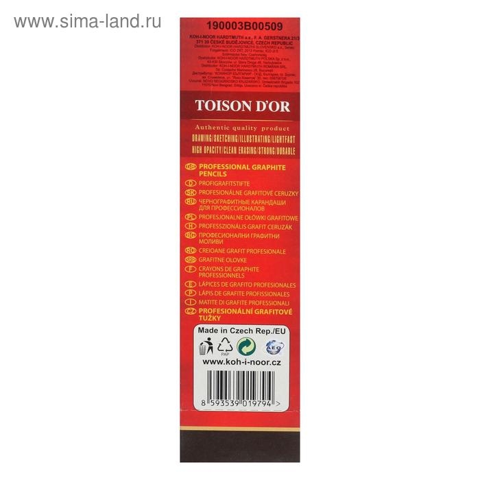Карандаш профессиональный чернографитный 2.5 мм, Koh-I-Noor 1900 3В, L=175 мм