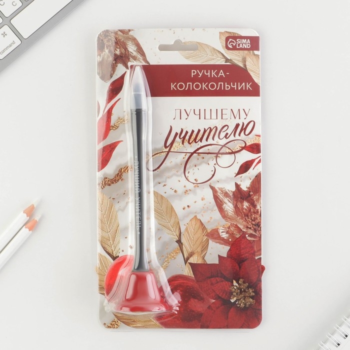 Ручка шариковая-колокольчик на подложке, пластик, синяя паста, 0.8 мм «Лучшему учителю»
