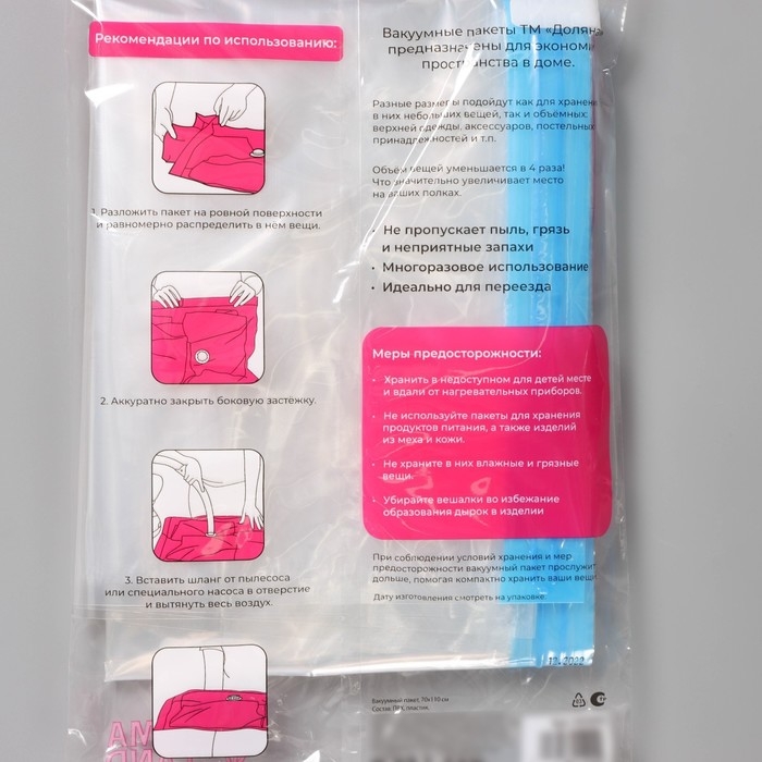- Не храните в таких пакетах еду, кожаные и меховые изделия.