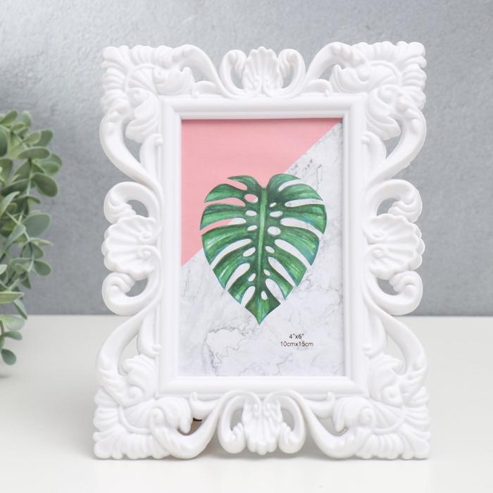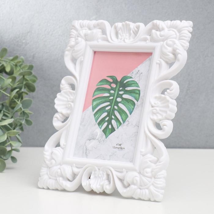 Фоторамка пластик 10х15 см "Растительный орнамент" белая 21,5х16 см