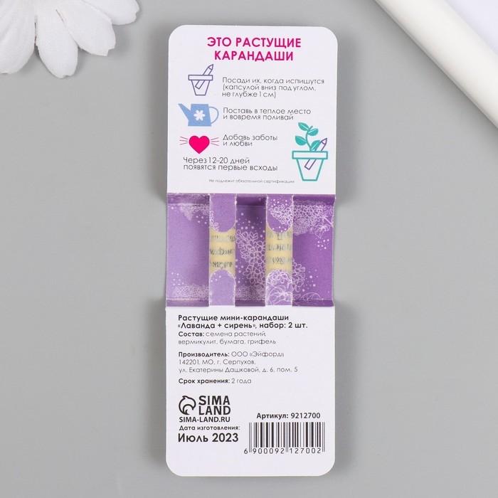 Растущие подарочные карандаши mini "Лаванда + Сирень" набор 2 шт.