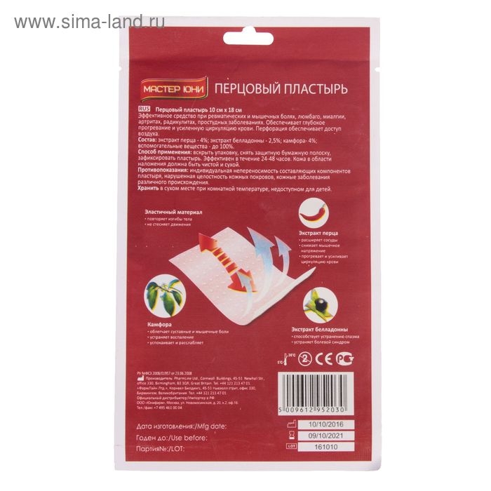 Пластырь перцовый MASTER UNI перфорированный, 10 см х 18 см