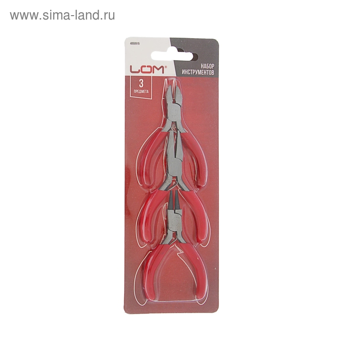 Набор инструментов ЛОМ, круглогубцы, длинногубцы и бокорезы, обрезиненные рукоятки, 80 мм