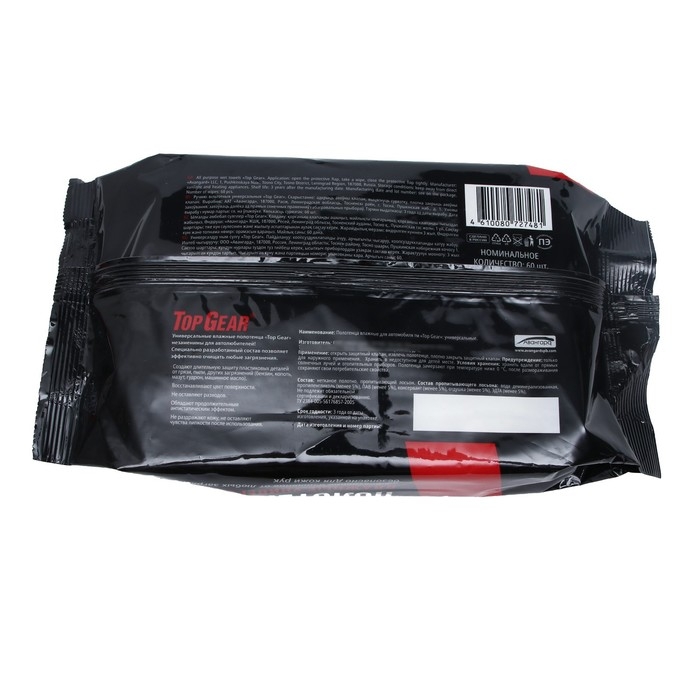 Влажные полотенца Top Gear универсальные автомобильные, 60 шт