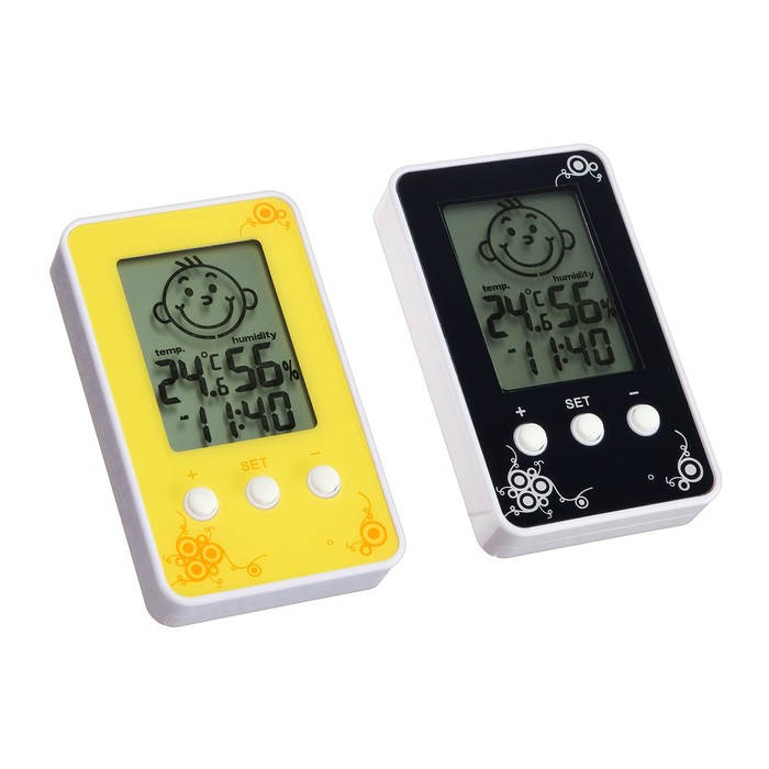 Термометр Luazon LTR-12, электронный, указатель влажности, часы, МИКС