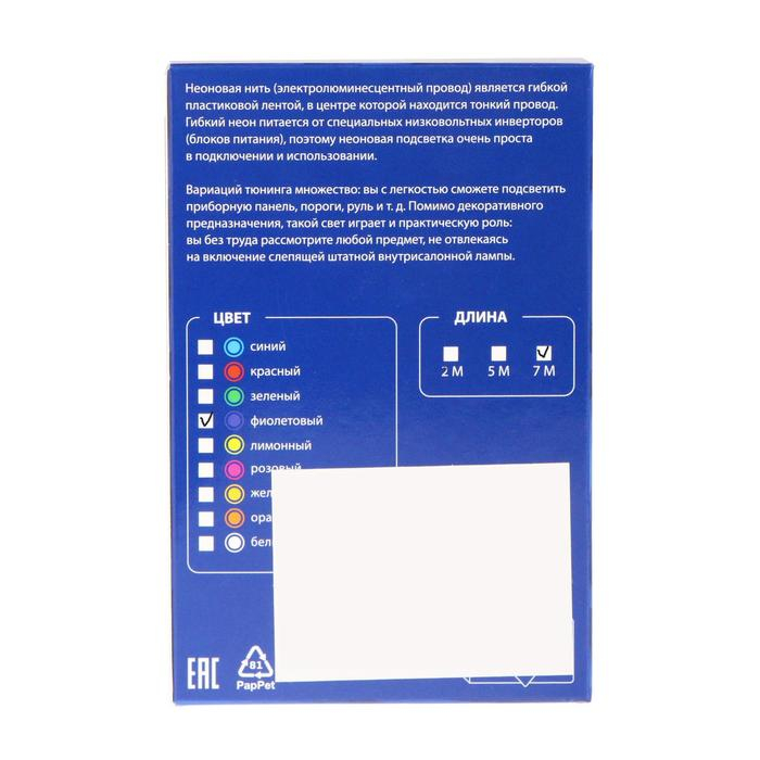 Неоновая нить Cartage для подсветки салона, адаптер питания 12 В, 7 м, фиолетовый