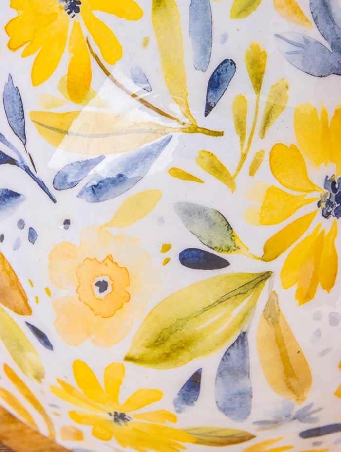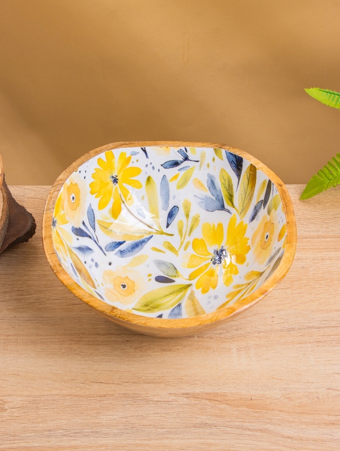 Салатник "Желтые и синие цветы" дерево манго 23х23х10,5 см