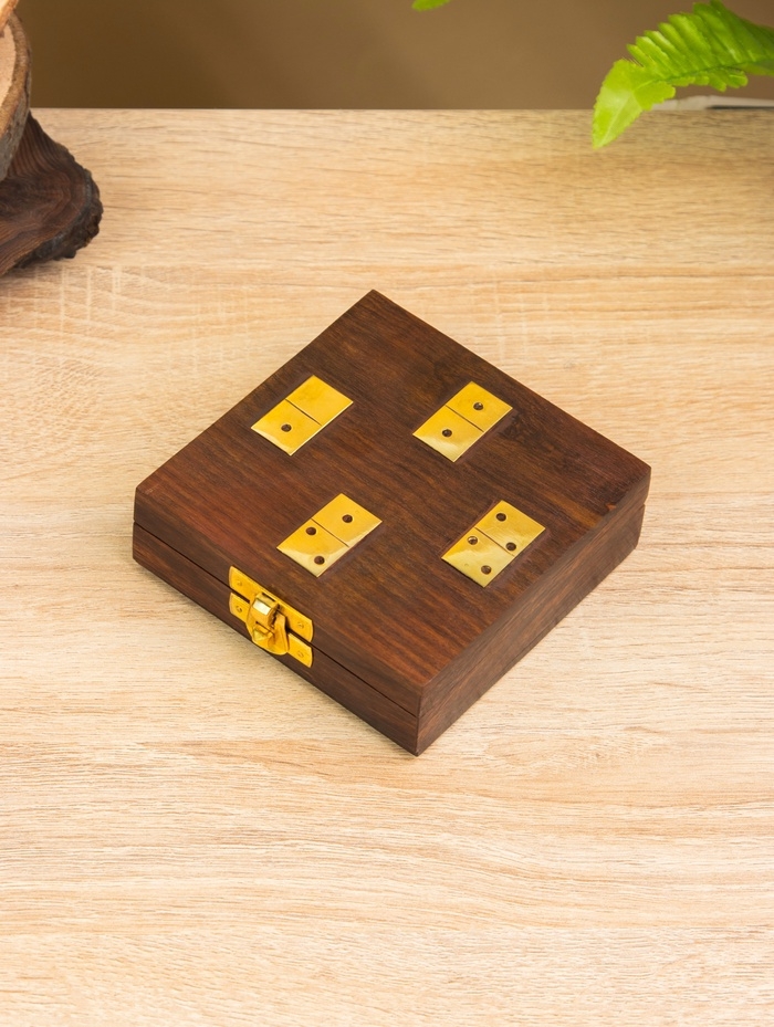 Настольная игра "Домино" 18,5х7,5х4 см, дерево шишам, латунь