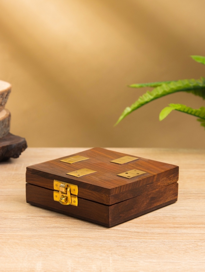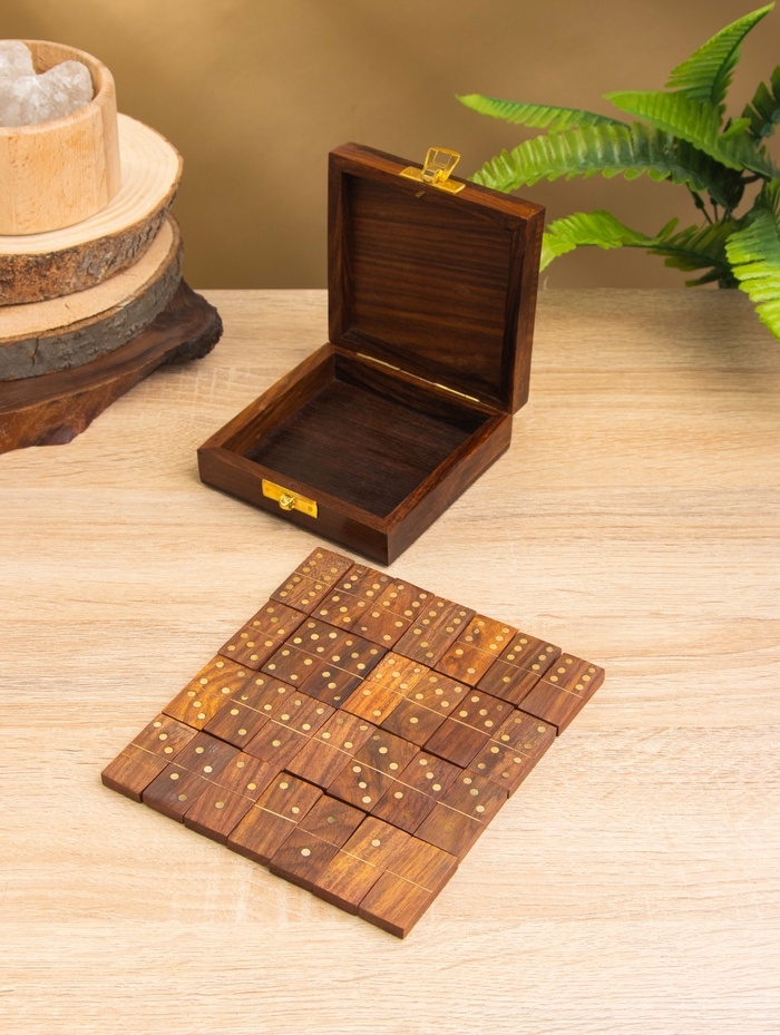 Настольная игра «Домино», 11×11.5×4 см, дерево шишам, латунь