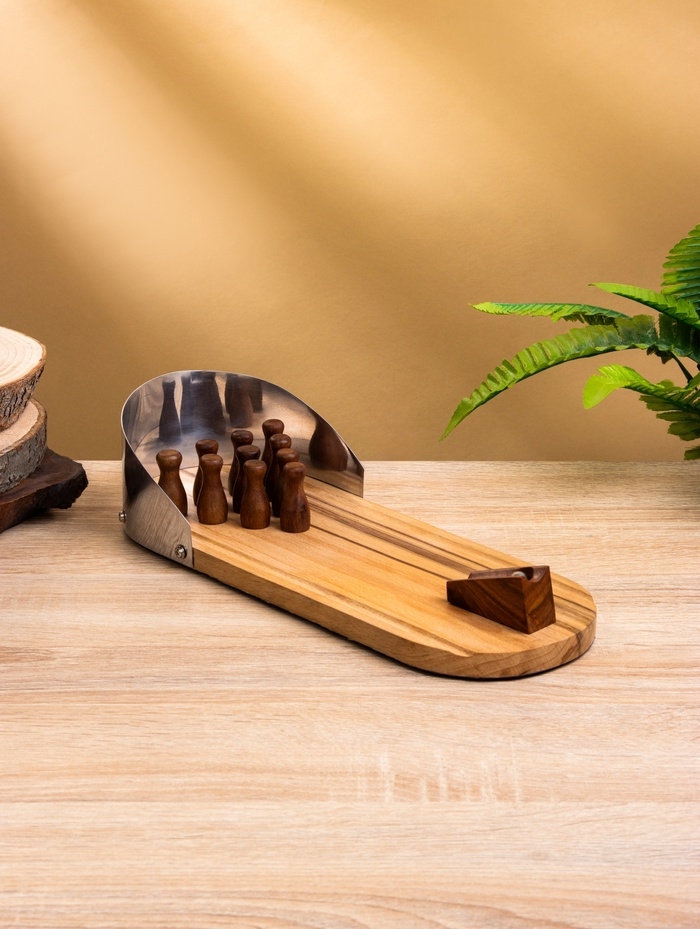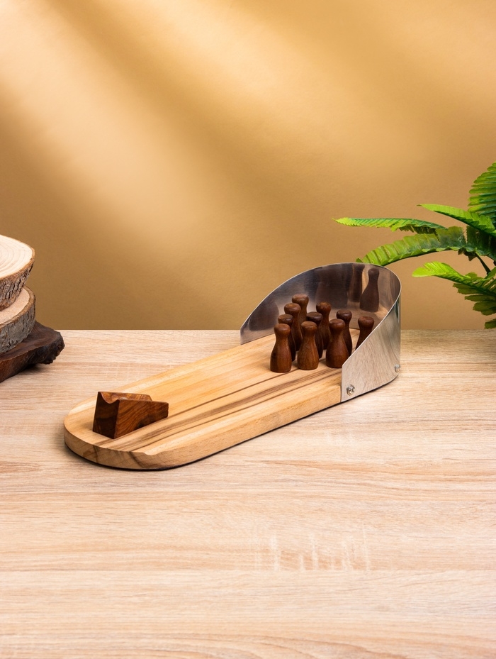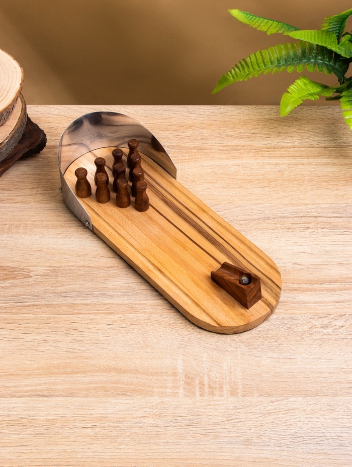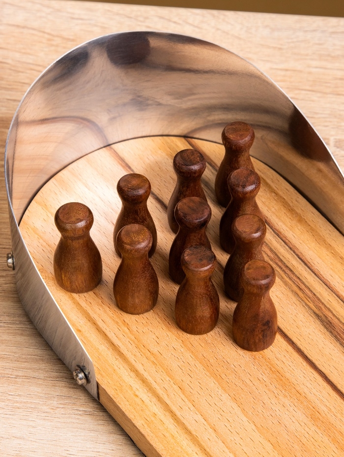 Настольная игра "Мини боулинг" 30х11х6 см, манговое дерево, алюминий