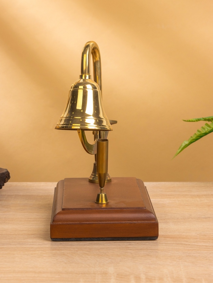 Колокол настольный с подставкой для ручки 10×18×18 см, латунь, дерево