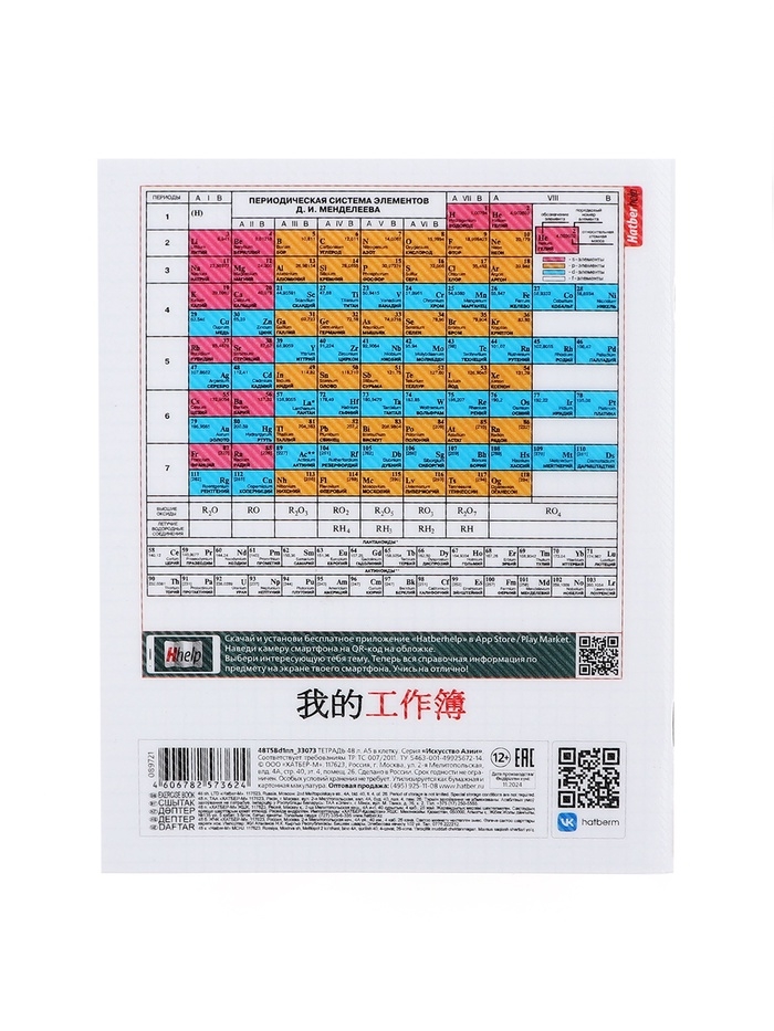 Тетрадь 48 листов в клетку «Искусство Азии» ХИМИЯ, пластиковая обложка с печатью, тиснение фольгой, с интерактивным справочником, блок офсет