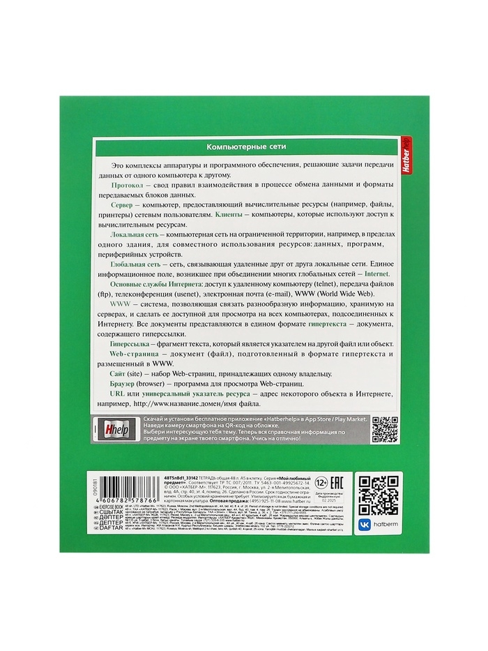 Тетрадь 48 листов в клетку «Мой любимый предмет» ИНФОРМАТИКА, обложка мелованный картон, Soft-touch, с интерактивным справочником, блок офсет