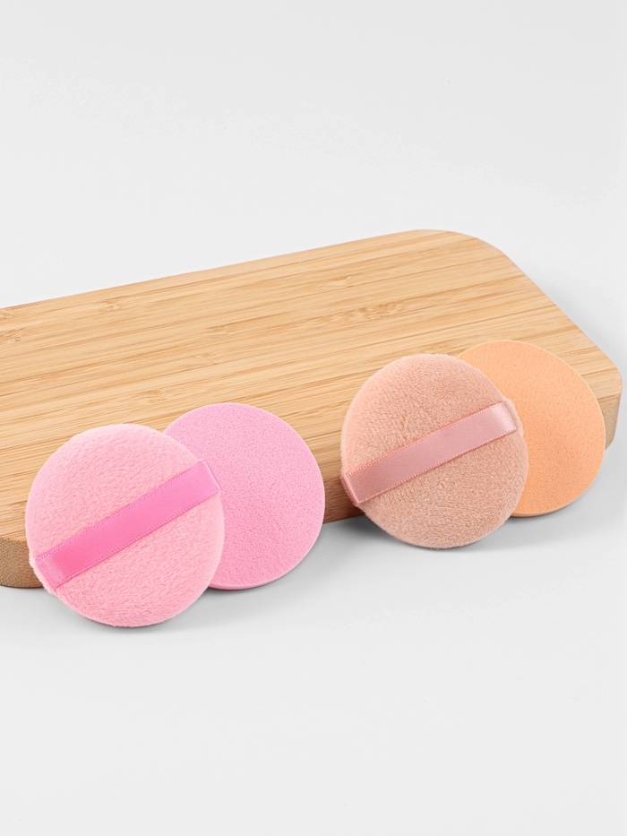 Набор д/макияжа 4шт: 2 пуховки, 2 спонжа латекс/полиэстер роз/беж пакет QF