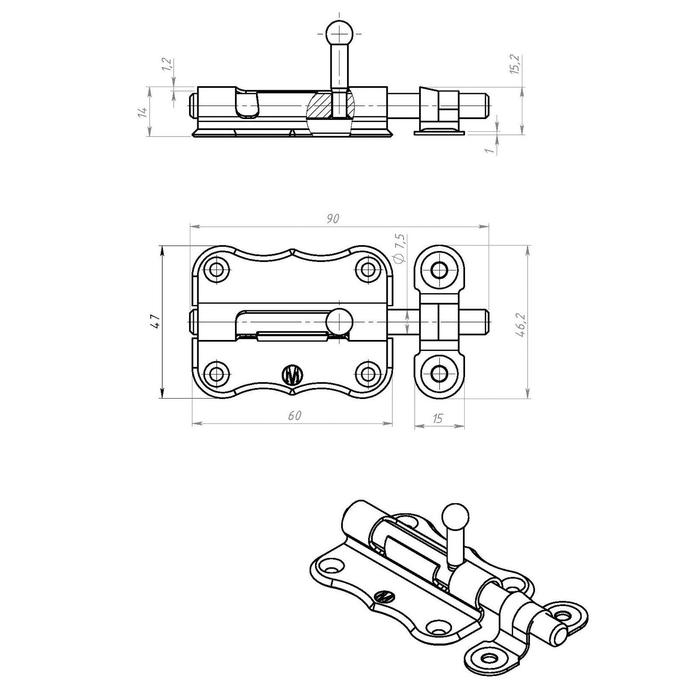 Оцинкованная накладная задвижка на дверь ЗТ2-60 — один из самых надёжных защитников вашей безопасности, ведь, в отличие от обычных средств защиты, к ней нет доступа с наружной стороны.