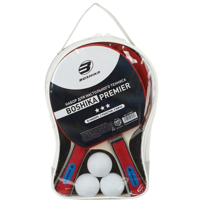 Набор для настольного тенниса BOSHIKA Premier: 2 ракетки, 3 мяча, 3 звезды