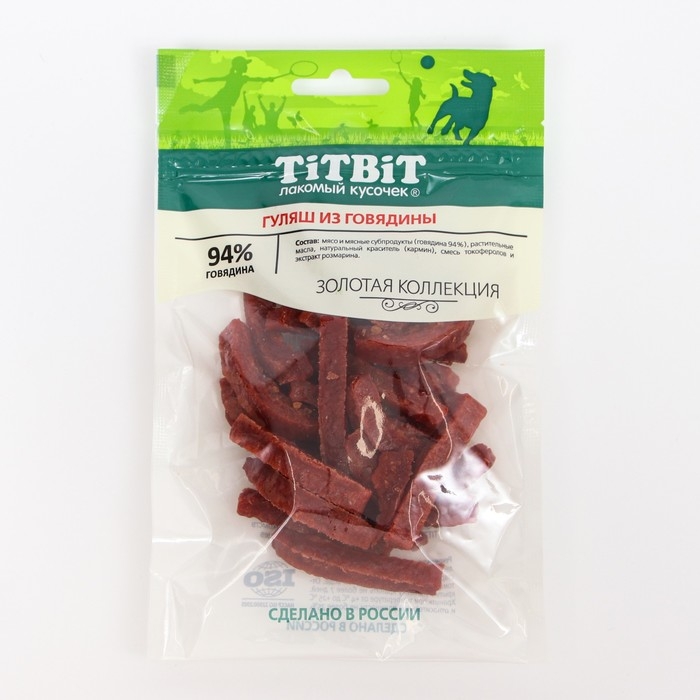 Лакомство для собак Titbit Гуляш из говядины "Золотая коллекция", 65 г