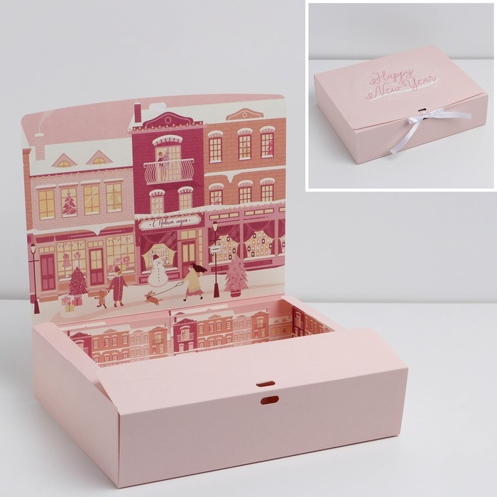 Коробка подарочная новогодняя складная двухсторонняя «Розовый Новый год», 31 х 24.5 х 8 см, Новый год
