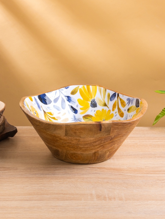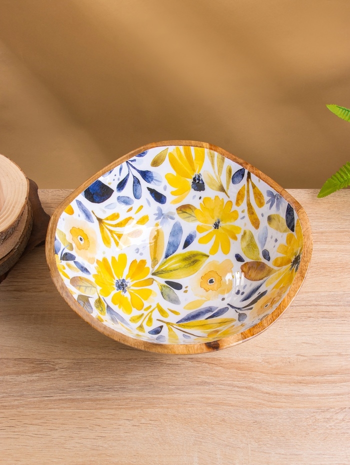 Салатник "Желтые и синие цветы" дерево манго 29х29х11 см