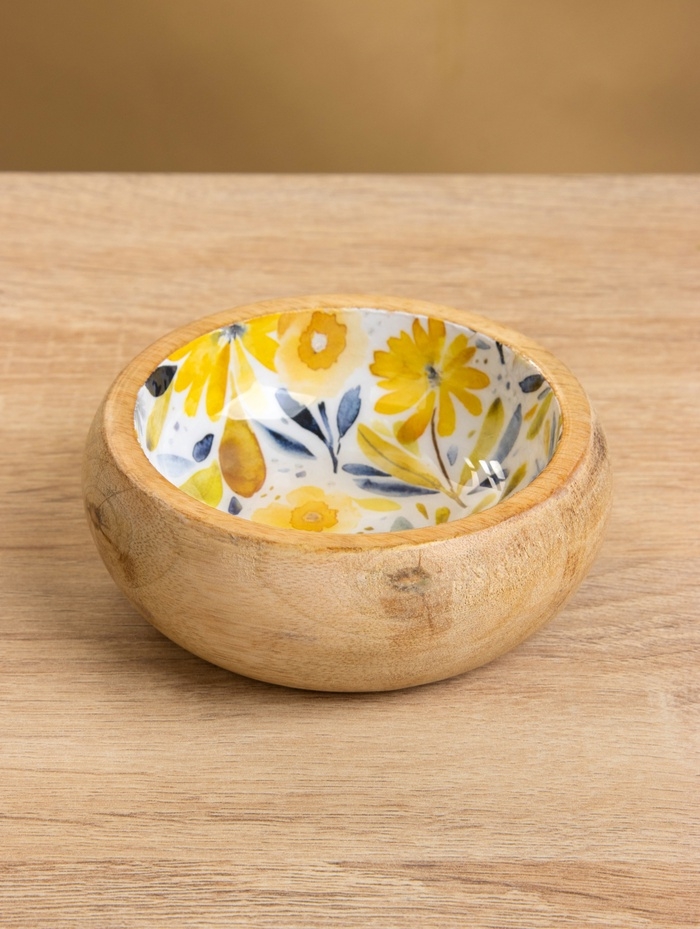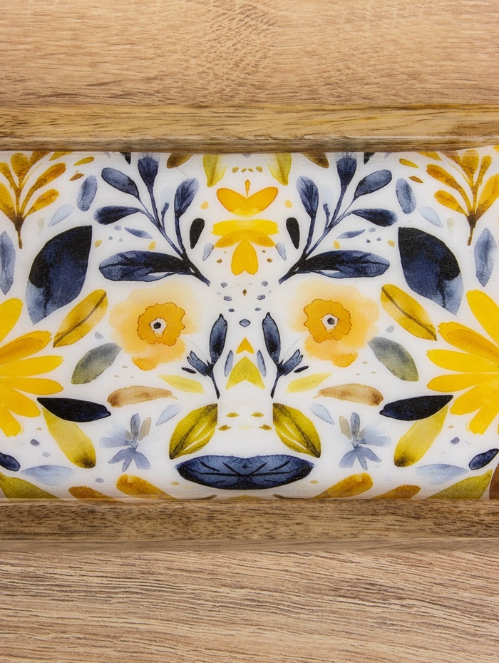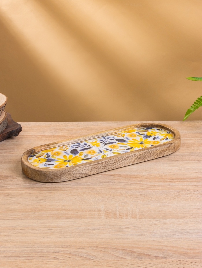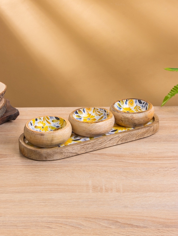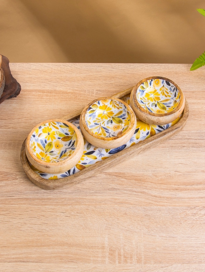 Набор розеток на подносе "Желтые и синие цветы" (3 шт) дерево манго 33,5х13х6,5 см