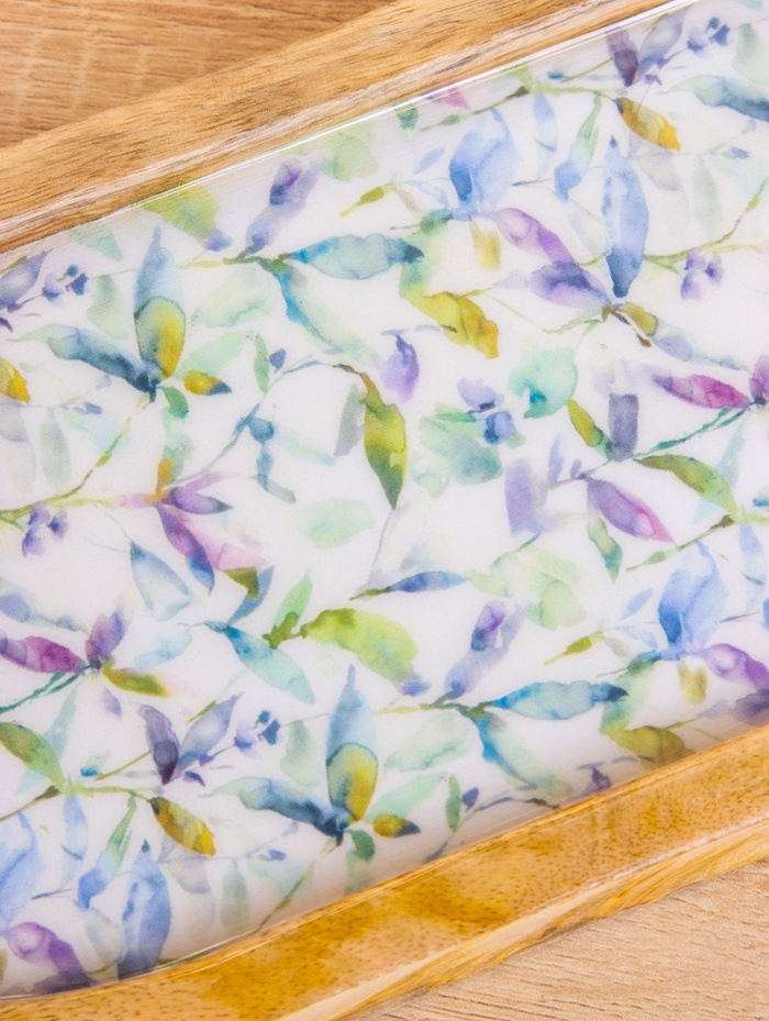Набор розеток на подносе "Оттенки сирени" (3 шт) дерево манго 33,5х13х6,5 см