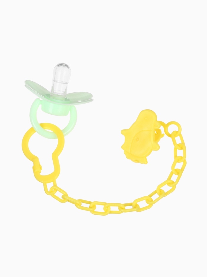 Пустышка классическая, с держателем, +0мес., цвет зеленый/желтый