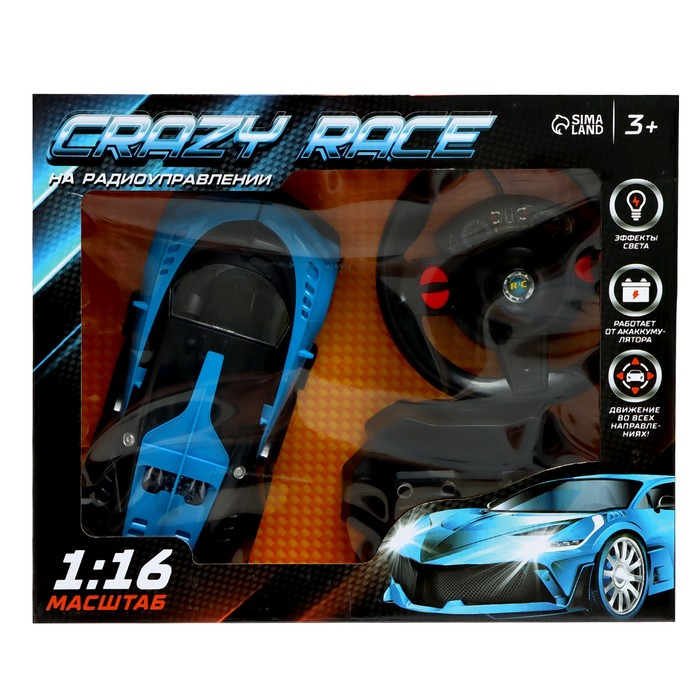 Машина радиоуправляемая «Купе», в комплекте педали и руль, работает от аккумулятора, синий