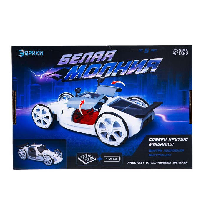 Удивите вашего будущего учёного необычной игрушкой! Яркая высококачественная модель станет отличным подарком на любой праздник. «Белая молния» поможет узнать много интересного, познакомит с современной механикой и электроникой. А главное — машинка работает от двух видов источников энергии: солнечной батареи или двух батареек типа AA.